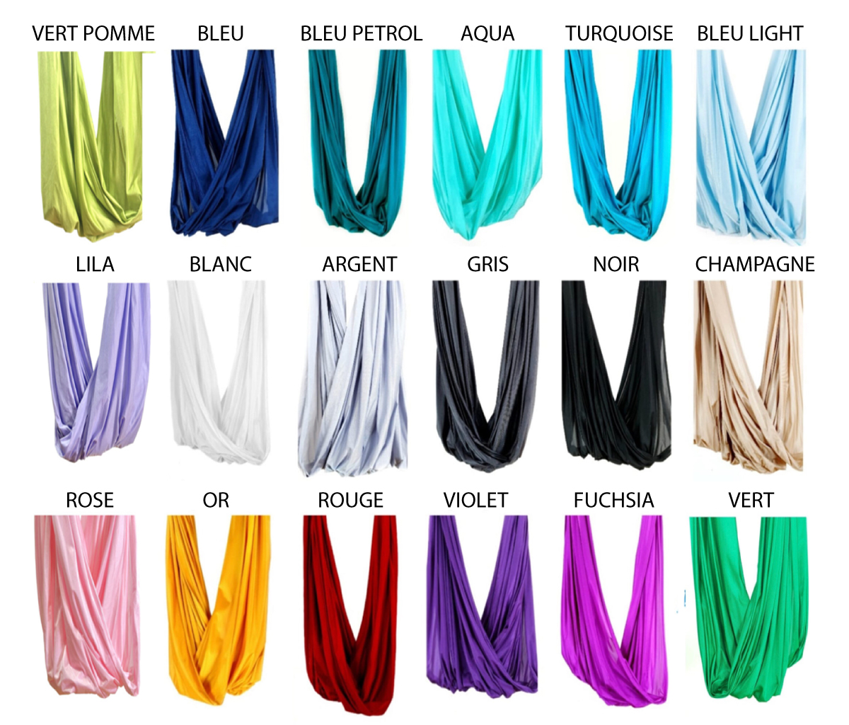 Le tissu a été spécialement choisi pour sa qualité et sa fibre adaptée pour la pratique du yoga aérien et le hamac est préparé par mes soins.